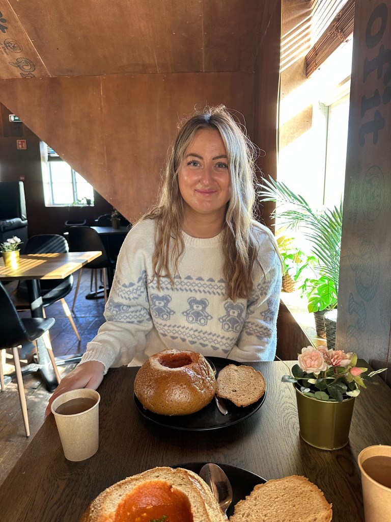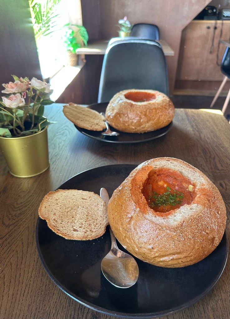 With each mouthful, you can take a spoonful of the softened bread from the inside of your bowl. Be careful not to take too much from the bottom so it doesn’t break too early; however if it does, no worries – they’ll give you a regular bowl!